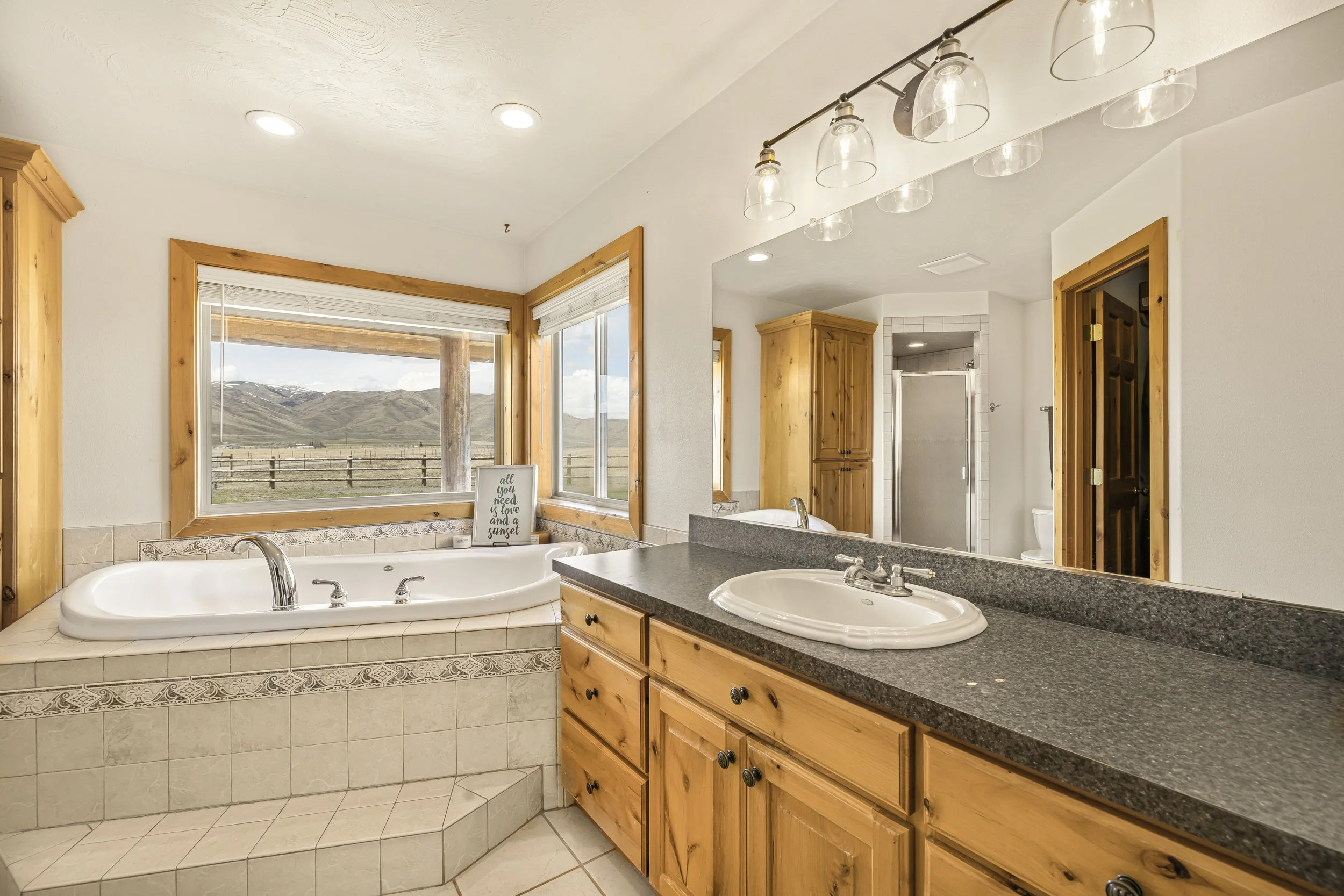 Who needs a television when the real show is right out your window. Lofty picture windows open to the Lost River range.